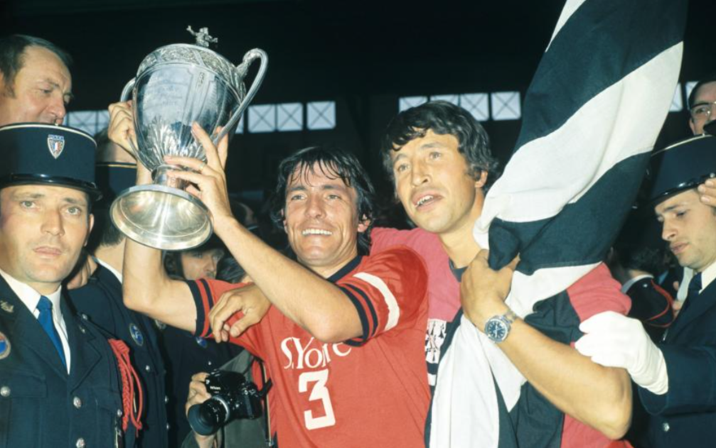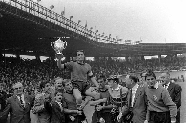 Défaits à deux reprises en finale en 1922 et 1935, le Stade Rennais finira par remporter sa première Coupe de France en 1965. La bande à Jean Prouff, devenu entraineur du club à l’été 1964, parvient l’année suivante à se hisser en finale suite à un parcours atypique. Après avoir écarté le Red Star en 32ème de finale, le RC Lens en 16ème puis le club amateur de Saint Quentin en 8ème, les coéquipiers de Yves Boutet se retrouvent opposés à l’OGC Nice, vainqueur à 4 reprises du championnat sur la décennie précédente. Face au club azuréen, ils déroulent leur jeu, s’imposent 5 à 2 et se qualifient en demi-finale au cours de laquelle ils affronteront l’AS Saint-Etienne. Cette dernière qui se déroule sur terrain neutre au Parc des Princes voit les rennais réaliser une magnifique performance face aux partenaires de l’emblématique Robert Herbin. Victorieux 3-0, la bande à Jean Prouff se qualifie 30 ans après pour une nouvelle finale. Le 23 mai, les rennais affrontent l’US Sedan-Torcy avec l’espoir d’accrocher un deuxième titre au palmarès du club. Pourtant favoris avant le match, les bretons se retrouvent rapidement menés de 2 buts par la formation de Louis Dugauguez. Ils parviennent finalement à réduire le score en fin de première mi-temps par l’intermédiaire de Ascencio avant d’égaliser au retour des vestiaires d’une tête de Daniel Rodighiero. Le score ne bouge plus malgré 30 minutes de prolongations et les séances de tirs aux buts n’existant pas encore à cette époque, la finale doit être rejouée 3 jours plus tard. Menés à la mi-temps de cette deuxième confrontation 1-0 suite à un but inscrit sur penalty juste avant la mi-temps, les rennais reviennent en seconde mi-temps avec de meilleures intentions et parviennent à renverser le score. L’inévitable Rodighiero inscrira un doublé et contribuera à la victoire de son équipe sur le score de 3-1. Ce 26 mai 1965, le Stade Rennais devient le premier club breton à remporter la Coupe de France.